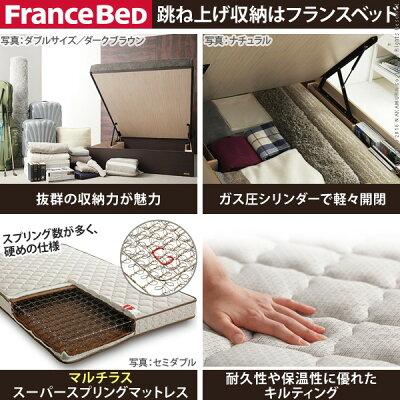 フランスベッド セミダブル 収納 フラットヘッドボードベッド 〔グリフィン〕 跳ね上げ縦開き セミダブル マルチラススーパースプリングマットレスセット 収納ベッド 木製 日本製 マットレス付き