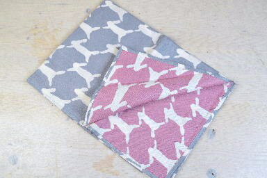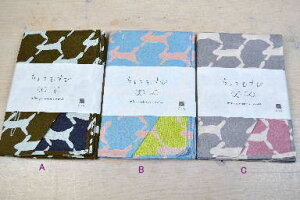 手捺染で染められたうさぎがポイントに! ふろしきのどこかに輪をくぐったうさぎとmpの文字が入っているんですよ〜(*^-^*) また、リバーシブルになっていてどちらの色も素敵です★