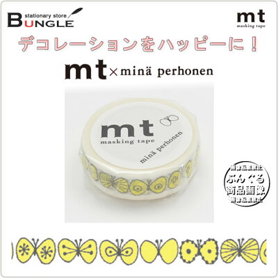 【単色1巻・15mm幅×10m】マスキングテープ[mt×ミナペルホネン]choucho・yellow(mina perhonen/ミナ ペルホネン)MTMINA03 カモ井加工紙 カモイ ちょうちょ イエロー マステ【メーカー取り寄せ商品】