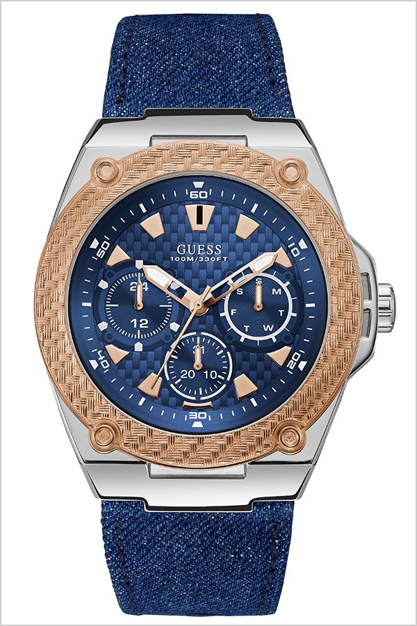 型番 W1058G1 ケース材質:ステンレススティールサイズ約:径45mmベルト材質:デニム レザーカラー:ブルーベルト腕周り最大:20cmムーブメントクォーツ(電池式)機能カレンダー機能(曜日・日付表示)スモールセコンド防水機能防水性:日常生活用強化防水(10気圧)付属品GUESS専用BOX保証書取扱説明書※説明書・保証書に関して入荷時期により仕様、内容が一部異なる場合がございます。