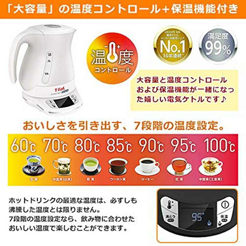 【2月25日24時間限定!5と0のつく日のエントリー&楽天カード決済でポイント7倍】【キャッシュレス5%還元店】ティファール T-fal 電気ケトル 1.2L ジャスティン プラス コントロール ブラック KO7558JP