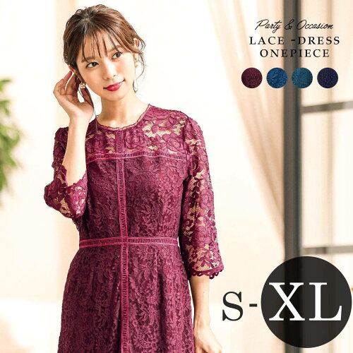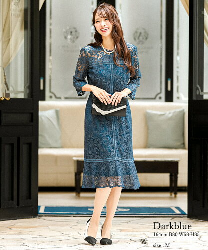 サイズ 着丈 肩巾 バスト ウエスト 袖丈 袖口 裾周り S 101cm 36cm 91cm 66cm 40cm 28cm 203cm M 102cm 37cm 95cm 70cm 41cm 29cm 207cm L 103cm 38cm 99cm 74cm 42cm 30cm 211cm XL 104cm 39cm 103cm 78cm 43cm 32cm 215cm カラー ダークブルー / ネイビー / グリーン / ボルドー / ピンク / サックス 素材 レースA 綿65% ナイロン 35% / レースB 綿70% ナイロン 30% / 裏地 ポリエステル97% ポリウレタン3% 備考 クルミボタン / バックファスナーあり 伸縮性なし / 透け感 身頃はなし 生産国 中国 モデル身長 164cm B80 W58 H85 / size : M コメント 結婚式や二次会・披露宴や女子会、成人式にピッタリなオケージョンワンピースドレス 贅沢な総レースでトレンドライクに仕上げた一枚。