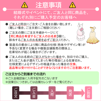 結婚式やイベントにて、ご友人と同じ商品をそれぞれ別にご購入予定のお客様へご友人と同日にご注文・ご入金をお願い致します。
